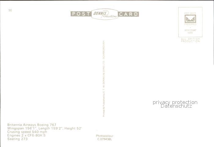 Flugzeuge Zivil Britannia Airways Boeing 767 postalisch nicht gelaufen Erhaltung siehe scans