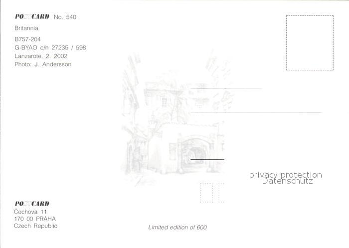 Flugzeuge Zivil Britannia B757-204 G-BYAO c/n 27235/598 postalisch nicht gelaufen Erhaltung siehe scans