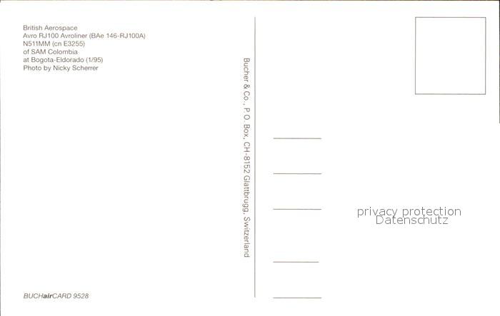 Flugzeuge Zivil British Aerospace Avro RJ100 Avroliner BAe 146-RJ100A N511MM cn E3255 Sam Colombia postalisch nicht gelaufen Erhaltung siehe scans