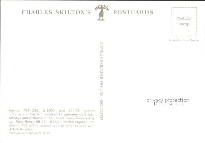 Flugzeuge Zivil British Airways 757-236 G-BIKD c/n 22175 postalisch nicht gelaufen Erhaltung siehe scans