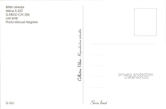 Flugzeuge Zivil British Airways Airbus A-320 G-MEDD C/N 386 postalisch nicht gelaufen Erhaltung siehe scans