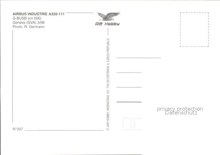Flugzeuge Zivil British Airways Airbus Industrie A320-111 G-BUSB (cn 006) postalisch nicht gelaufen Erhaltung siehe scans