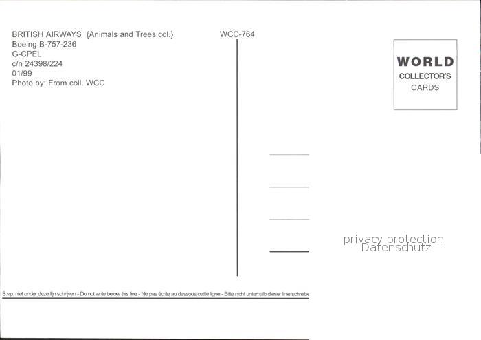 Flugzeuge Zivil British Airways Animals and Trees Boeing 757-236 G-CPEL postalisch nicht gelaufen Erhaltung siehe scans