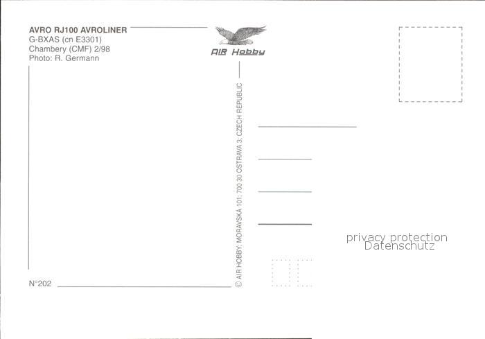 Flugzeuge zivil British Airways AVRO RJ100 Avroliner G-BXAS (cn E3301) Chambery postalisch nicht gelaufen Erhaltung siehe scans