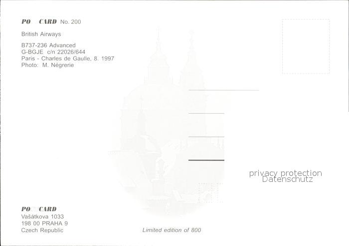 Flugzeuge Zivil British Airways B737-236 Advanced G-BGJE c/n 22026/644 postalisch nicht gelaufen Erhaltung siehe scans