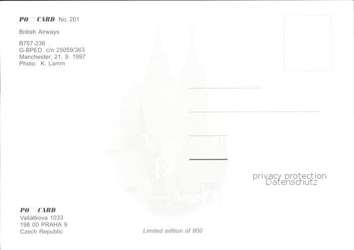 Flugzeuge Zivil British Airways B757-236 G-BPED c/n 25059/363 postalisch nicht gelaufen Erhaltung siehe scans