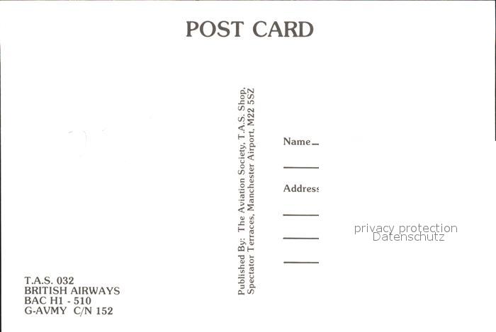 Flugzeuge Zivil British Airways BAC H1-510 G-AVMY C/N 152 postalisch nicht gelaufen Erhaltung siehe scans