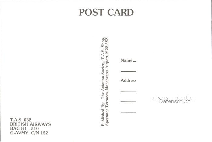 Flugzeuge Zivil British Airways BAC H1-510 G-AVMY C/N 152 postalisch nicht gelaufen Erhaltung siehe scans
