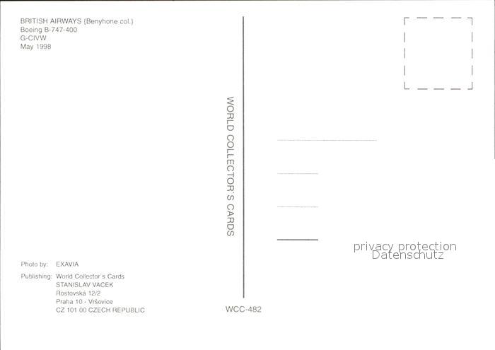 Flugzeuge Zivil British Airways Benyhone colours Boeing 747-400 G-CIVW postalisch nicht gelaufen Erhaltung siehe scans
