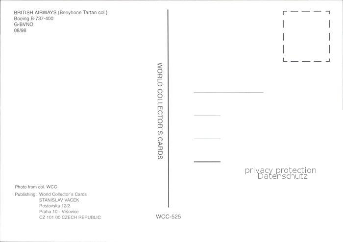 Flugzeuge Zivil British Airways Benyhone Tartan colours Boeing 737-400 G-BVNO postalisch nicht gelaufen Erhaltung siehe scans