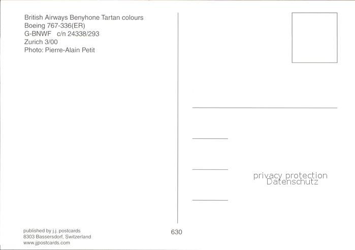 Flugzeuge Zivil British Airways Benyhone Tartan colours Boeing 767-336 ER G-BNWF postalisch nicht gelaufen Erhaltung siehe scans