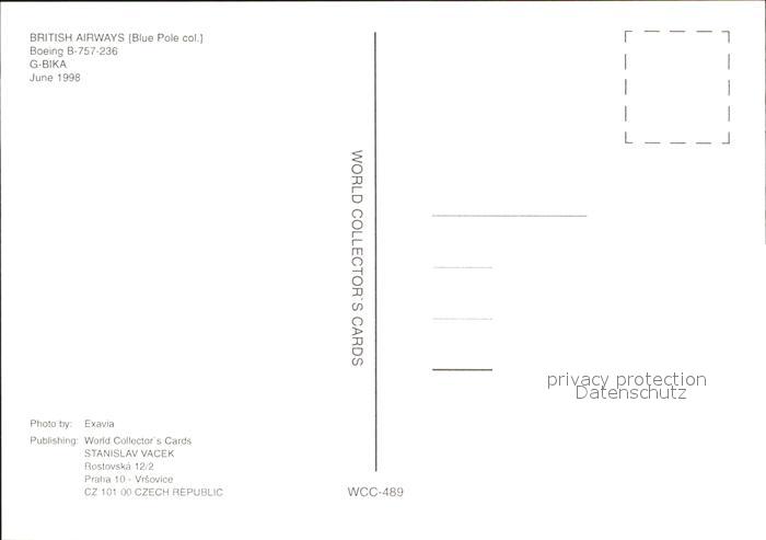 Flugzeuge Zivil British Airways Blue Pole col. B-757-236 G-BIKA postalisch nicht gelaufen Erhaltung siehe scans