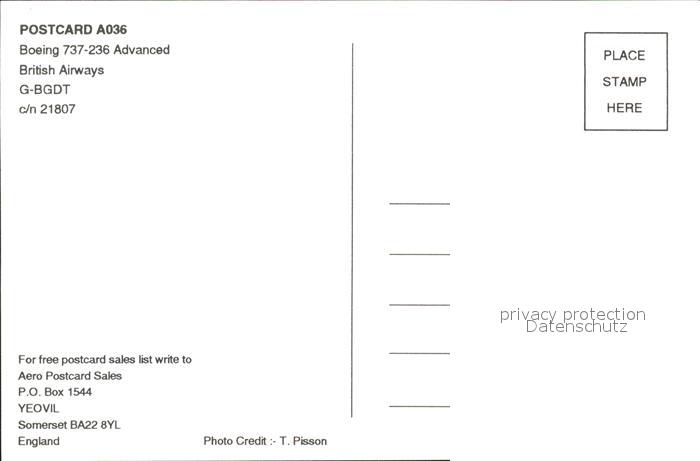 Flugzeuge Zivil British Airways Boeing 737-236 Advanced G-BGDT c/n 21807 postalisch nicht gelaufen Erhaltung siehe scans