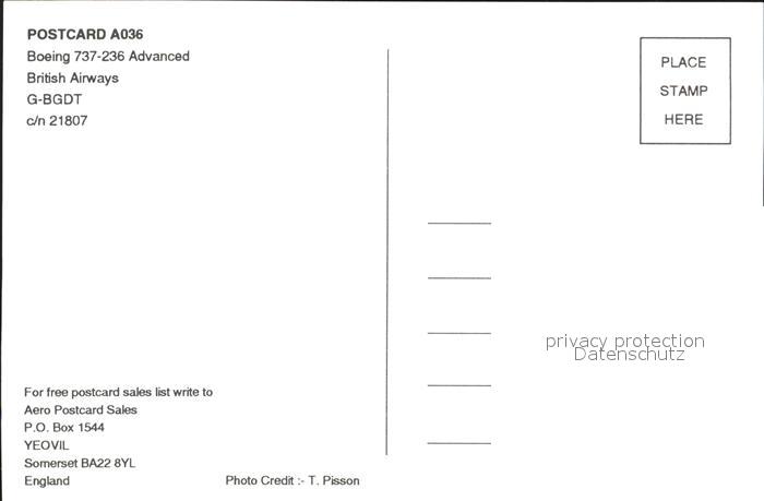 Flugzeuge Zivil British Airways Boeing 737-236 Advanced G-BGDT c/n 21807 postalisch nicht gelaufen Erhaltung siehe scans