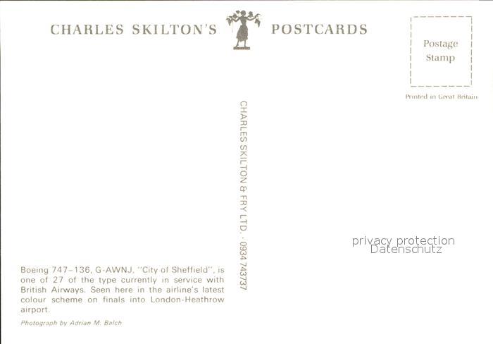 Flugzeuge Zivil British Airways Boeing 747-136 G-AWNJ postalisch nicht gelaufen Erhaltung siehe scans