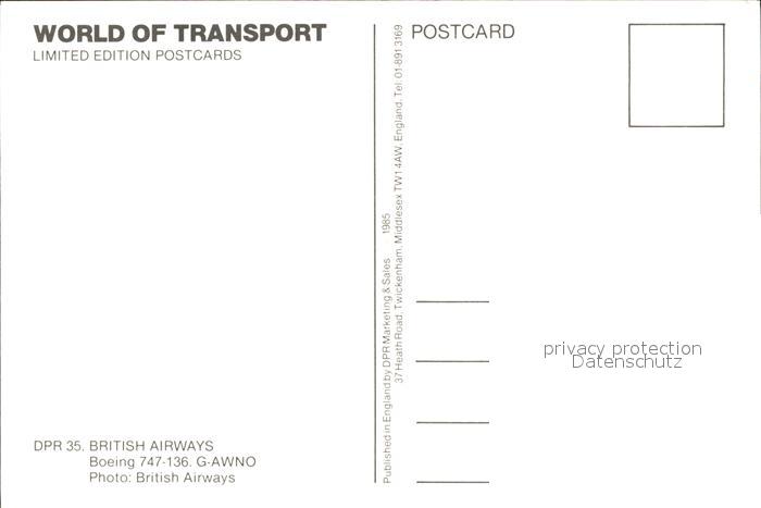 Flugzeuge Zivil British Airways Boeing 747-136 G-AWNO postalisch nicht gelaufen Erhaltung siehe scans