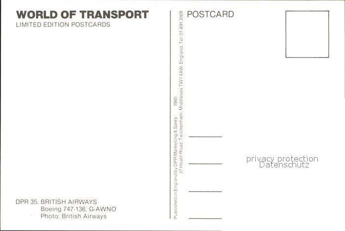 Flugzeuge Zivil British Airways Boeing 747-136 G-AWNO postalisch nicht gelaufen Erhaltung siehe scans