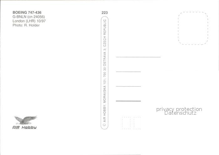 Flugzeuge Zivil British Airways Boeing 747-436 G-BNLN cn 24056 postalisch nicht gelaufen Erhaltung siehe scans