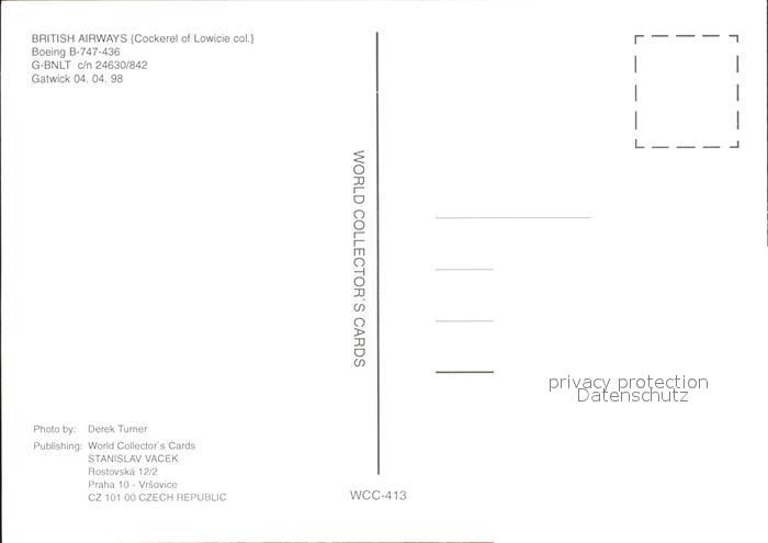 Flugzeuge Zivil British Airways Boeing 747-436 G-BNLT c/n 24630/842 postalisch nicht gelaufen Erhaltung siehe scans