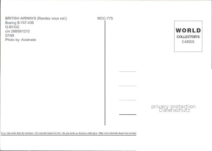Flugzeuge Zivil British Airways Boeing 747-436 G-BYGG c/n 28859/1212 postalisch nicht gelaufen Erhaltung siehe scans