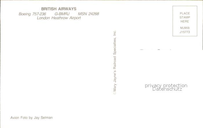 Flugzeuge Zivil British Airways Boeing 757-236 G-BMRJ MSN 24268 postalisch nicht gelaufen