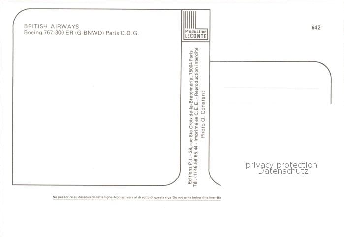 Flugzeuge Zivil British Airways Boeing 767-300ER G-BNWD postalisch nicht gelaufen Erhaltung siehe scans
