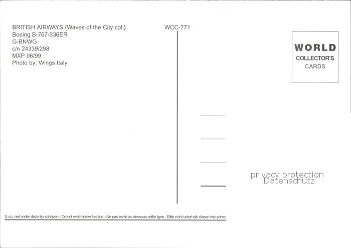 Flugzeuge Zivil British Airways Boeing 767-336ER G-BNWG c/n 24339/298 postalisch nicht gelaufen Erhaltung siehe scans