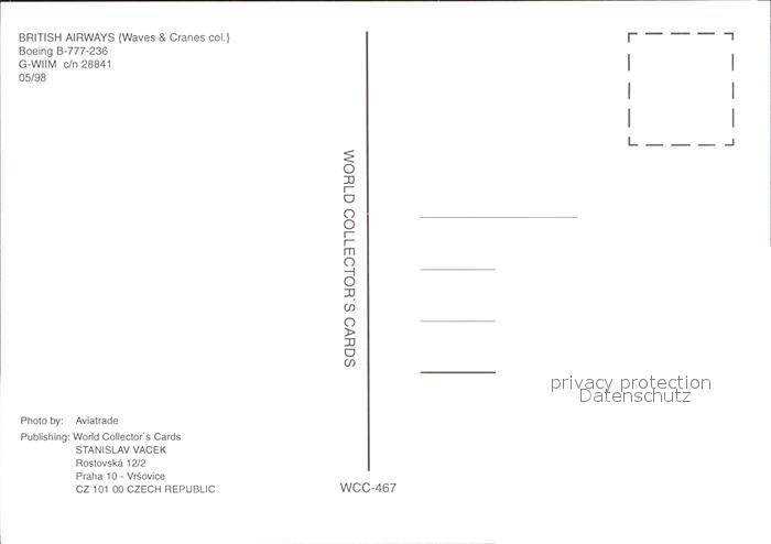 Flugzeuge Zivil British Airways Boeing 777-236 G-WIIM c/n 28841 postalisch nicht gelaufen Erhaltung siehe scans