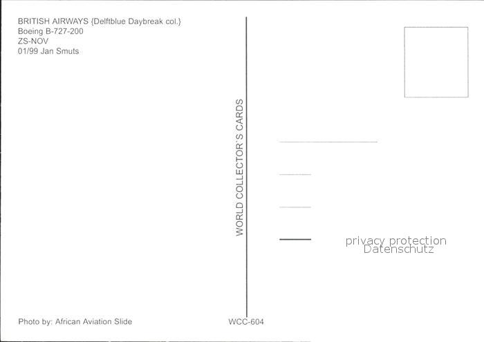 Flugzeuge zivil British Airways Boeing B-727-200 ZS-NOV postalisch nicht gelaufen Erhaltung siehe scans