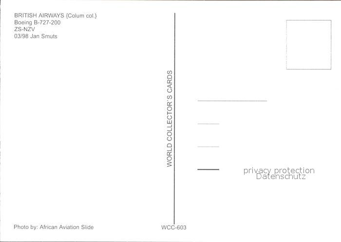 Flugzeuge zivil British Airways Boeing B-727-200 ZS-NZV postalisch nicht gelaufen Erhaltung siehe scans
