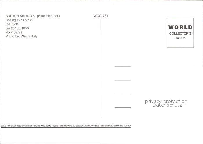 Flugzeuge Zivil British Airways Boeing B-737-236 G-BKYB c/n 23160/1053 postalisch nicht gelaufen