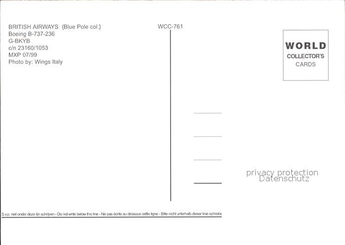 Flugzeuge Zivil British Airways Boeing B-737-236 G-BKYB c/n 23160/1053 postalisch nicht gelaufen Erhaltung siehe scans