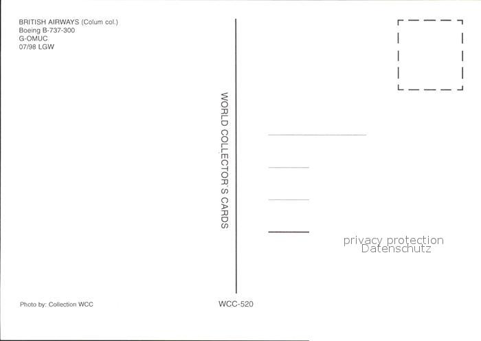 Flugzeuge zivil British Airways Boeing-B-737-300 G-OMUC LGW postalisch nicht gelaufen Erhaltung siehe scans