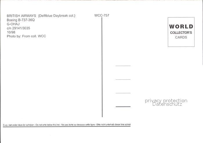 Flugzeuge Zivil British Airways Boeing B-737-36Q G-OHAJ c/n 29141/3035 postalisch nicht gelaufen Erhaltung siehe scans