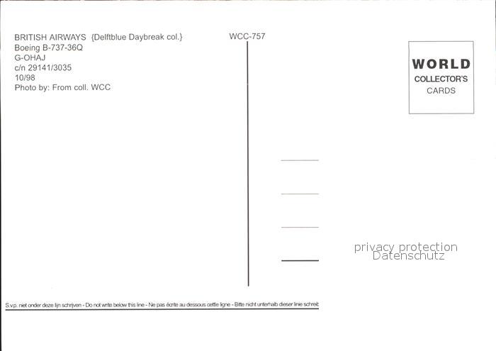 Flugzeuge Zivil British Airways Boeing B-737-36Q G-OHAJ c/n 29141/3035 postalisch nicht gelaufen Erhaltung siehe scans