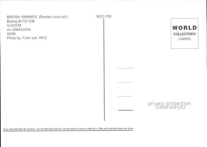 Flugzeuge Zivil British Airways Boeing B-737-436 G-DOCM c/n 25843/2244 postalisch nicht gelaufen