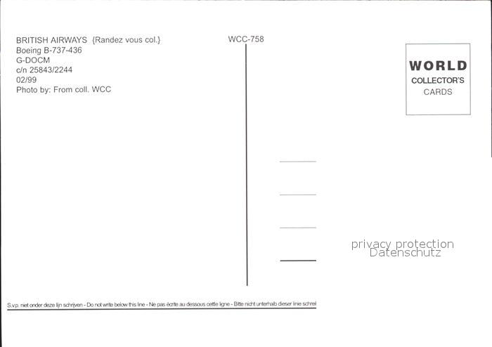 Flugzeuge Zivil British Airways Boeing B-737-436 G-DOCM c/n 25843/2244 postalisch nicht gelaufen Erhaltung siehe scans