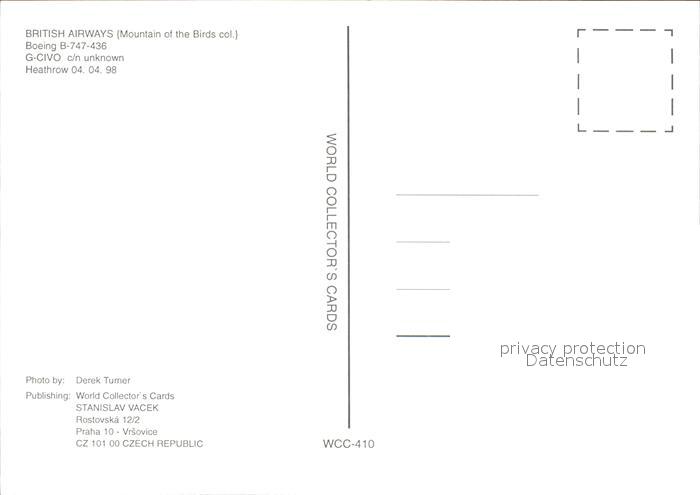 Flugzeuge Zivil British Airways Boeing B-747-436G-CIVO postalisch nicht gelaufen Erhaltung siehe scans