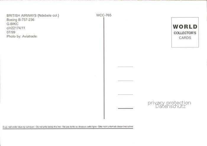Flugzeuge Zivil British Airways Boeing B-757-236 G-BIKC c/n 22174/11 postalisch nicht gelaufen Erhaltung siehe scans