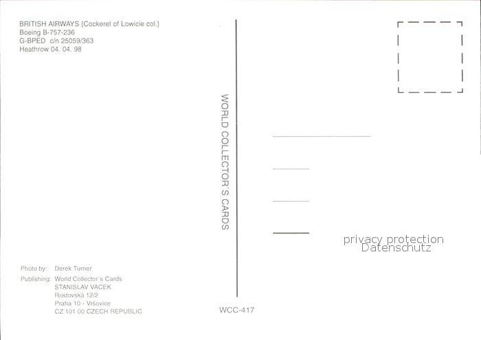 Flugzeuge Zivil British Airways Boeing B-757-236 G-BPED c/n 25059/363 postalisch nicht gelaufen