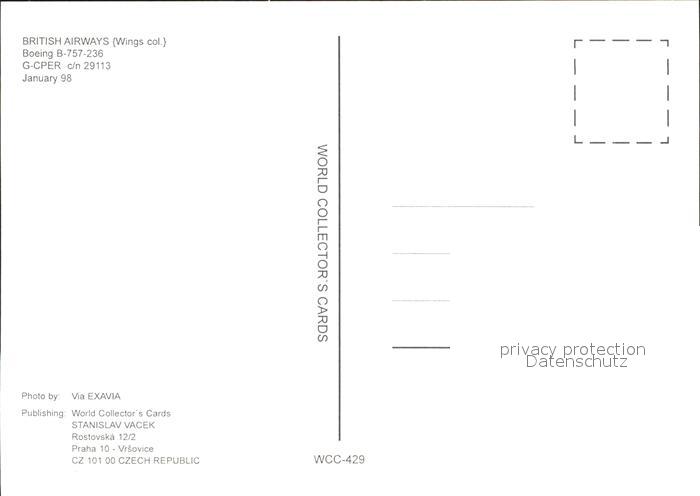 Flugzeuge Zivil British Airways Boeing B-757-236 G-CPER c/n 29113 postalisch nicht gelaufen Erhaltung siehe scans