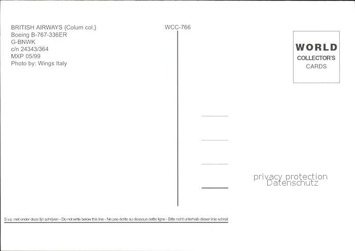 Flugzeuge Zivil British Airways Boeing B-767-336ER G-BNWK c/n 24343/364 postalisch nicht gelaufen