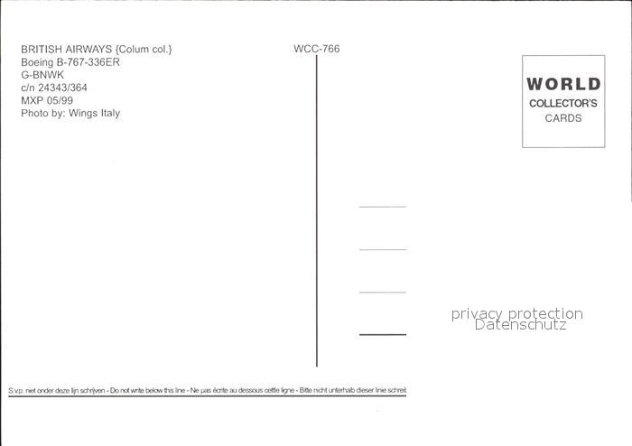 Flugzeuge Zivil British Airways Boeing B-767-336ER G-BNWK c/n 24343/364 postalisch nicht gelaufen Erhaltung siehe scans