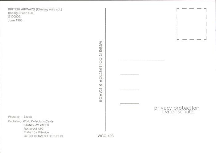 Flugzeuge Zivil British Airways Chelsey rose colours Boeing 737-400 G-DOCG postalisch nicht gelaufen Erhaltung siehe scans