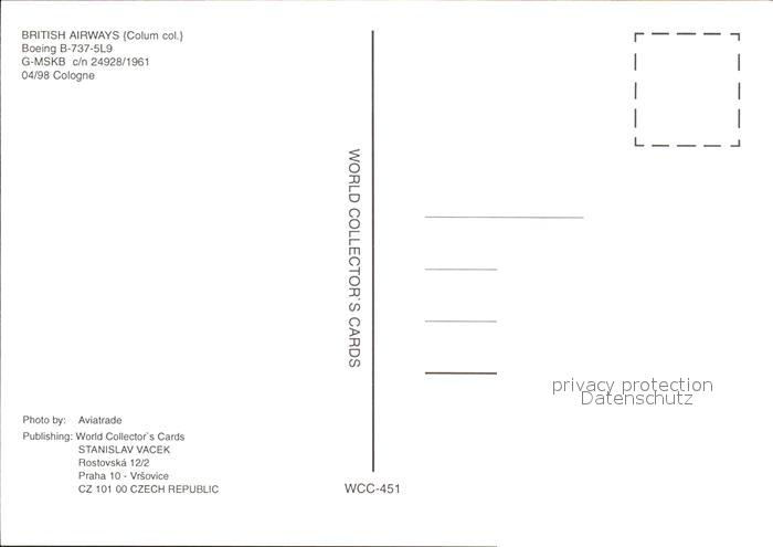 Flugzeuge Zivil British Airways Colum col. Boeing B-737-5L9 G-MSKB c/n 24928/1961 postalisch nicht gelaufen Erhaltung siehe scans