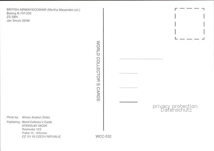 Flugzeuge zivil British Airways/Comair Boeing B-737-200 postalisch nicht gelaufen Erhaltung siehe scans