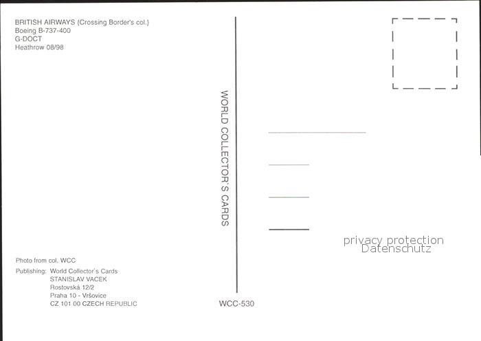 Flugzeuge Zivil British Airways Crossing Borders col. Boeing B-737-400 G-DOCT postalisch nicht gelaufen Erhaltung siehe scans
