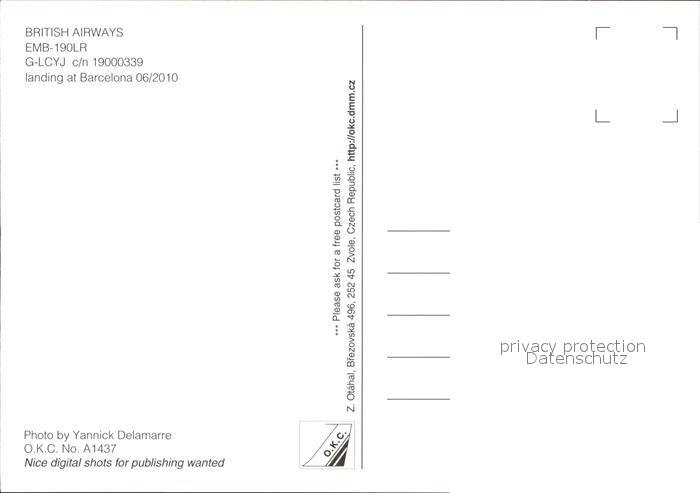 71819138 Flugzeuge Zivil British Airways EMB-190LR G-CYJ c/n 19000339 KatCode 22120000001300