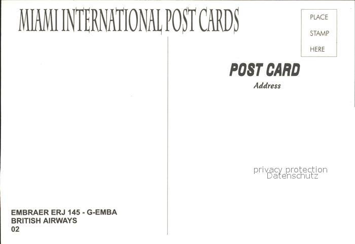 Flugzeuge Zivil British Airways Embraer ERJ 145 G-EMBA postalisch nicht gelaufen Erhaltung siehe scans