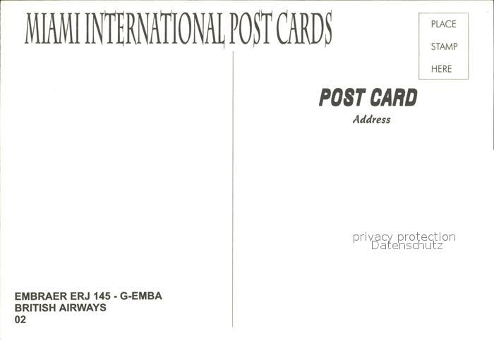Flugzeuge Zivil British Airways Embraer ERJ 145 G-EMBA postalisch nicht gelaufen Erhaltung siehe scans